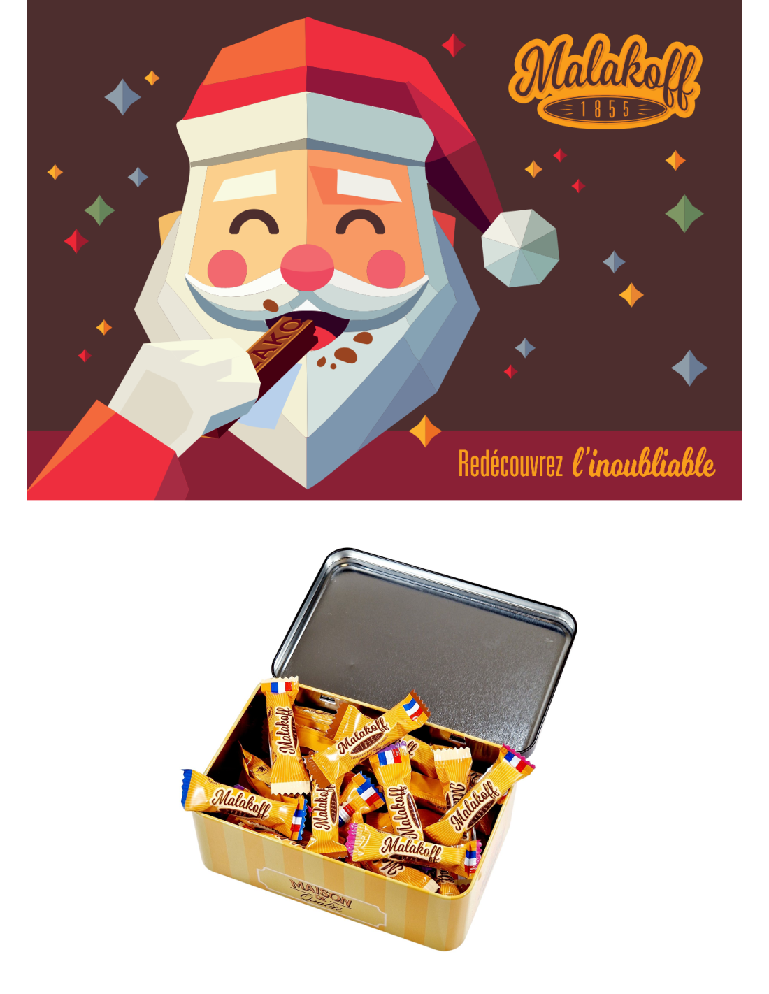 Découvrez 40 Mini Chocolats assortis, présentés dans une élégante boîte à sucre illustrée du Père Noël 2025. Offrez-vous un moment tendre et gourmand avec ces bouchées artisanales françaises au chocolat fondant. Parfaites pour partager, décorer la table de fête ou glisser sous le sapin. Un cadeau qui réveille la magie de Noël… et fait fondre les cœurs.